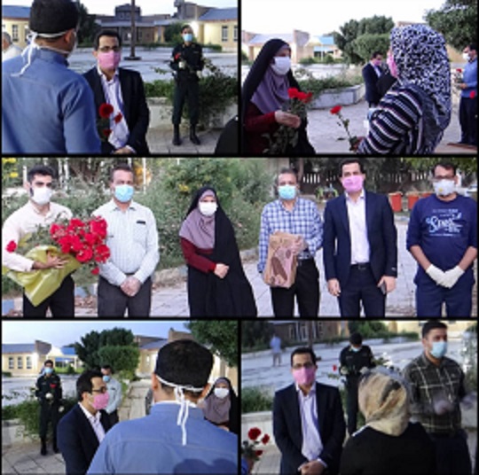 در این بازدید دکتر بختیاری به همراه مترون بیمارستان خانم آیت با اهدای گل از زحمات پرسنل نقاهتگاه تقدیر و تشکر کرد وگفت:از بدو پیدایش و شیوع ویروس کرونا این سپیدپوشان بودند که با ایثار و از جن گذشتگی نفس از خود بریدند تا نفس را به هموطنان خود اهدا کنندو هم اینک نیز هیچ لوح تقدیر ویا پاداشی جبران کننده ی ایثار و از خود گذشتگی این عزیزان نخواهد بود.