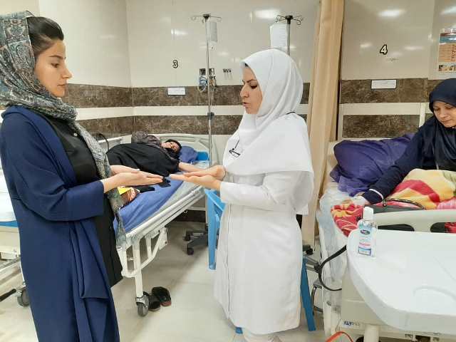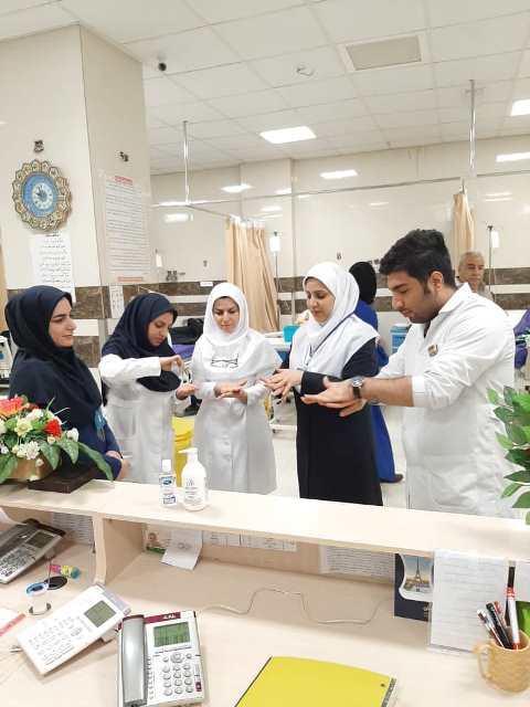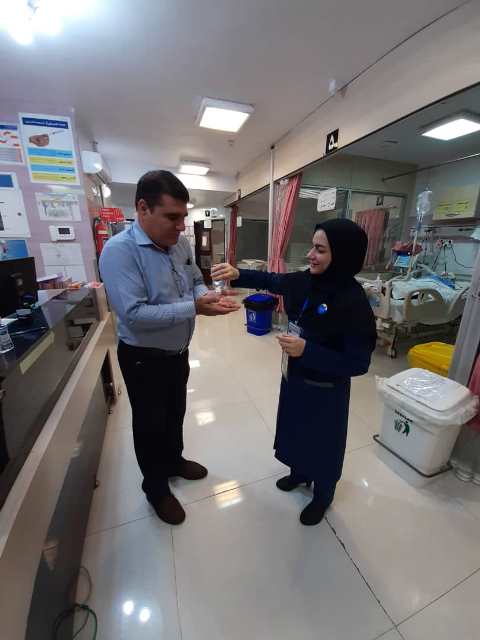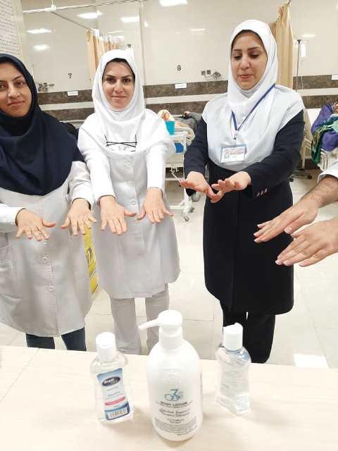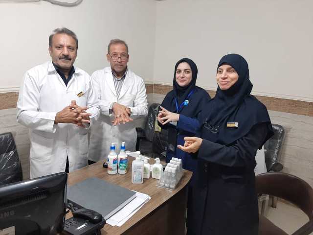 سپس تیم کنترل عفونت با حضور در بخش ها به پایش و آموزش بهداشت دست اقدام نموده وهدایایی از جمله محلول های هندراب جیبی و کرم های نرم کننده دست  به بخش هایی که در این پویش همراه شدند هدیه داده میشود.
