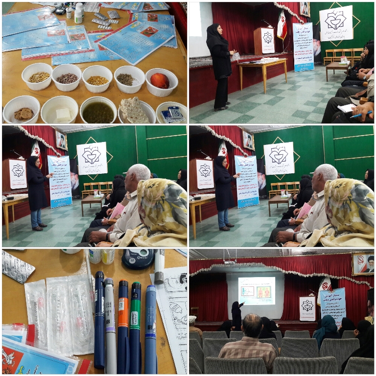 خانم شاهیجان وخانم ترکمنی کارشناسان دیابت وتغذیه:دررابطه باانواع انسولین وروش صحیح تزریق آن-روش صحیح استفاده ازدستگاه اندازه گیری قندخون درمنزل-عوارض انسولین وهمچنین گروههای غذایی ورژیم غذای دیابتی توضیحاتی راارائه دادند.