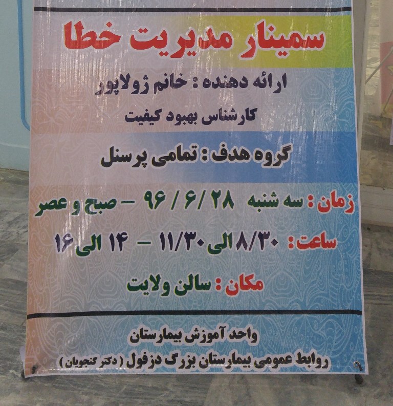 سمینارمدیریت خطا دربیمارستان بزرگ دزفول برگزارشد.