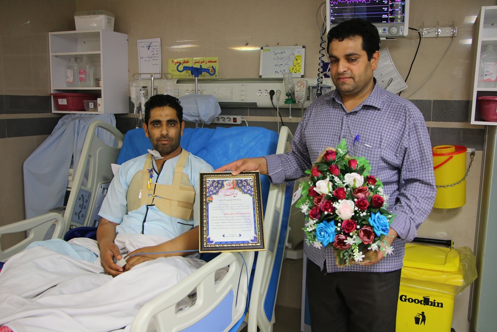 بیمارسیدحمید احمدی که ازشهرک خیبرازتوابع دزفول می باشد ضمن تشکرازکادرپزشکی وپرستاری وباقدردانی ازمسولین که این امکان رادردزفول برای بیماران مهیاکرده اند ازاینکه حیات دوباره ای به اوعطاشده خداوندراسپاس گفت وبااهداءلوح تقدیروسبدگل ونصب بنرتشکرخودرابصورت عملی نشان داد.