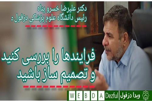 رئیس دانشگاه علوم پزشکی دزفول اظهار داشت: فرایند ها را بررسی کنید و تصمیم ساز باشید
