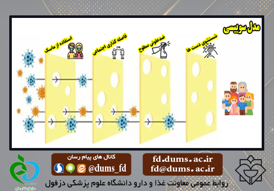 به گزارش خبرنگار وبدا به نقل از روابط عمومی معاونت غذا و دارو،محمد مرساقیان،اظهار داشت:کلید مقابله با کووید19، مراقبت از خود بر مبنای مدل پنیر سوییسی است یعنی استفاده از ماسک هنگام خروج از منزل، رعایت فاصله گذاری صحیح اجتماعی، شستشو و ضدعفونی دستها و ضدعفونی سطوح که هریک از این لایه ها به تنهایی محافظت کامل ایجاد نمی کنند.