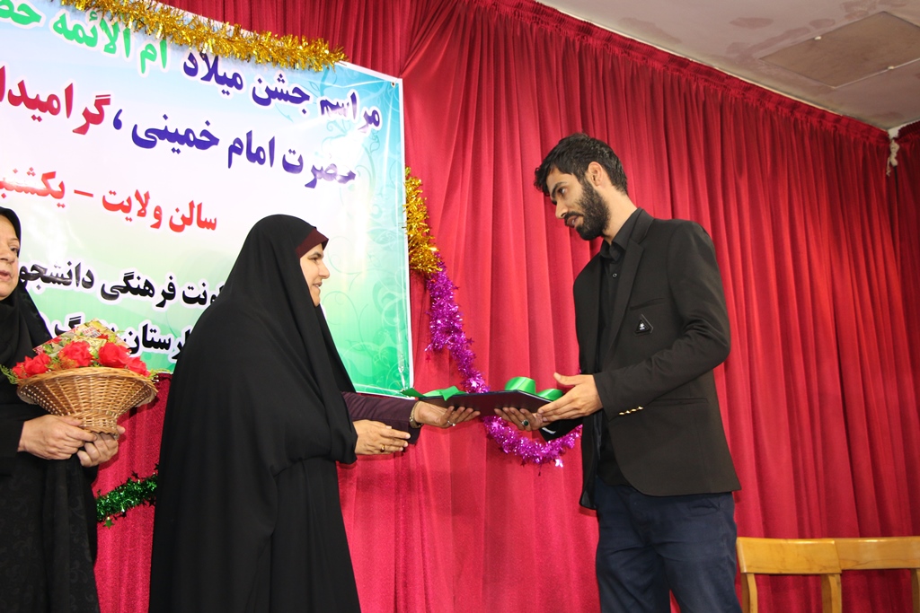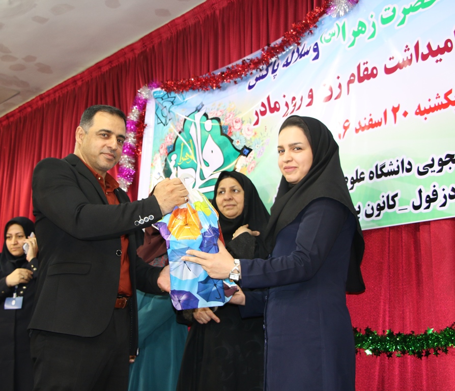 دربخشهای پایانی برنامه به خانواده زنده یاد شوکت محمدیان نزادلوح تقدیرازطرف ریاست بیمارستان ویک فقره چک به مبلغ500هزارتومان اهدا گردیدوبه خانم فریده عطارروشن بعنوان مادری نمونه وپرسنلی شایسته که به شرف بازنشستگی نائل شده ازطرف کارکنان واحدتصویربرداری هدایایی تقدیم شد.نیزبه5نفرازپاسخ دهندگان به سوالت سخنران وبه10نفرکارکنان وفرزندانشان که به نامهای زهرا-فاطمه-کوثر،نامگذاری شده اندوبه سه نفرازدانشجویان فعال عرصه فرهنگی هدایایی تقدیم گردید.