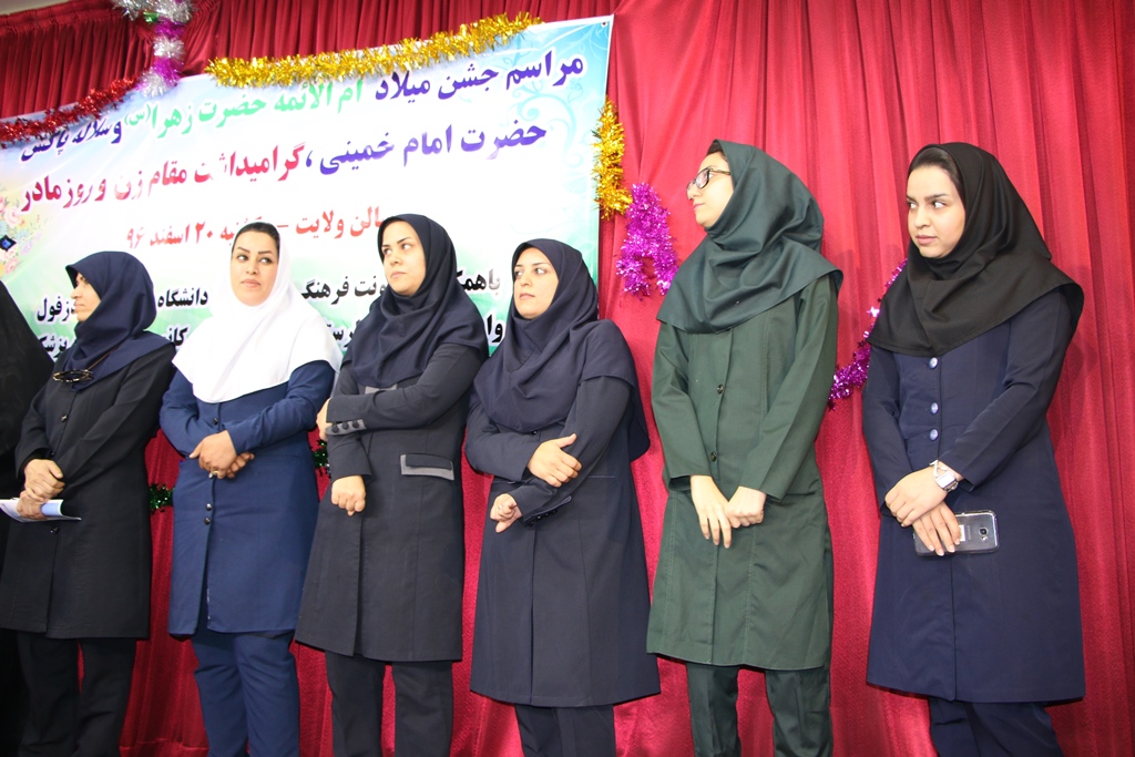 یکشنبه20اسفندبمناسبت ولادت باسعادت حضرت زهرا(س)وسلاله پاکش حضرت امام خمینی وگرامیداشت مقام زن وروزمادرمراسم جشنی باحضورمسولین،پرستاران،دانشجویان وکارکنان درسالن ولایت بیمارستان بزرگ دزفول برگزارشد.