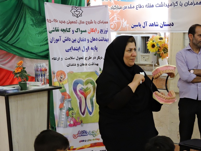 در راستای اجرای برنامه کشوری ارتقای سلامت دهان و دندان و همزمان با بازگشایی مدارس درسال تحصیلی 95-96 مرکز بهداشت دزفول اقدام به توزیع رایگان مسواک و کتابچه نقاشی بهداشت دهان و دندان در بین کلیه دانش آموزان پایه اول ابتدایی نمود. در اولین روز این طرح یکشنبه 4 مهرماه بصورت نمادین با حضور مسئولین مرکز بهداشت دزفول و نماینده محترم فرماندار که در دو دبستان خدیجه معرف پور و شاهد آل یاسین با همکاری اداره آموزش و پرورش شهرستان دزفول انجام گرفت همزمان آموزشهای لازم در خصوص طریقه صحیح مسواک زدن و تغذیه مناسب جهت داشتن دندانهای سالم توسط کارشناس دهان و دندان معاونت بهداشتی خانم نصیرگلی داده شد/