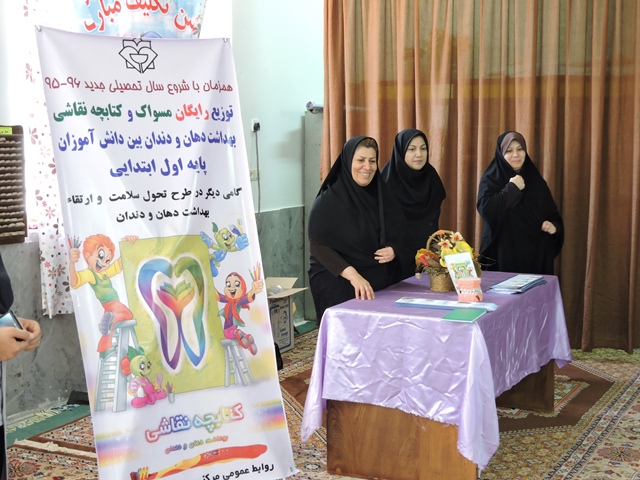 در راستای اجرای برنامه کشوری ارتقای سلامت دهان ودندان و همزمان با بازگشایی مدارس درسال تحصیلی 95-96 مرکز بهداشت دزفول اقدام به توزیع رایگان مسواک و کتابچه نقاشی بهداشت دهان و دندان در بین کلیه دانش آموزان پایه اول ابتدایی نمود.