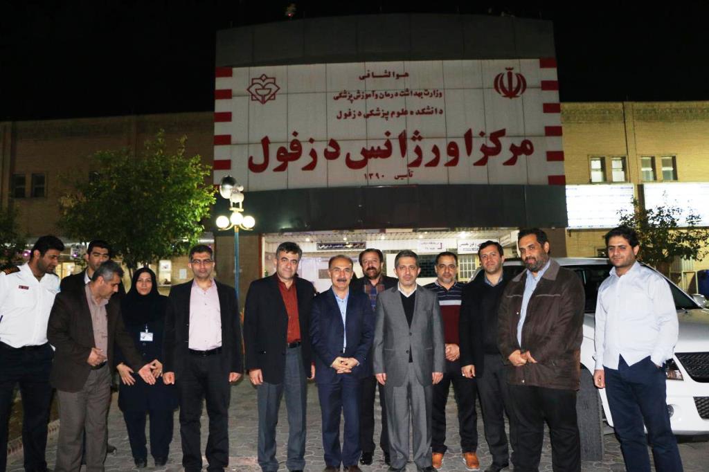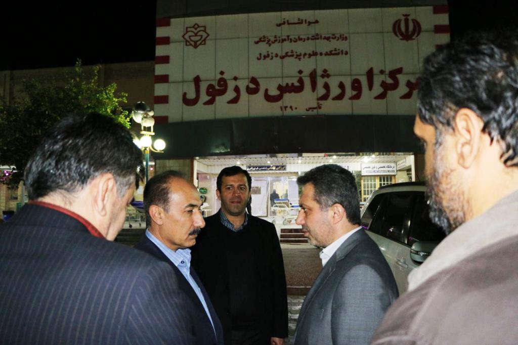 نیمه شب چهارشنبه27دی دکترقاسم جان بابایی معاون درمان وزارت بهداشت،درمان وآموزش پزشکی شبانگاه دربیمارستان بزرگ دزفول حضورپیداکردوازپروژه های تمام شده ونیزدرحال اتمام ازجمله ساختمان جدیداورژانس بازدیدبعمل آورد.