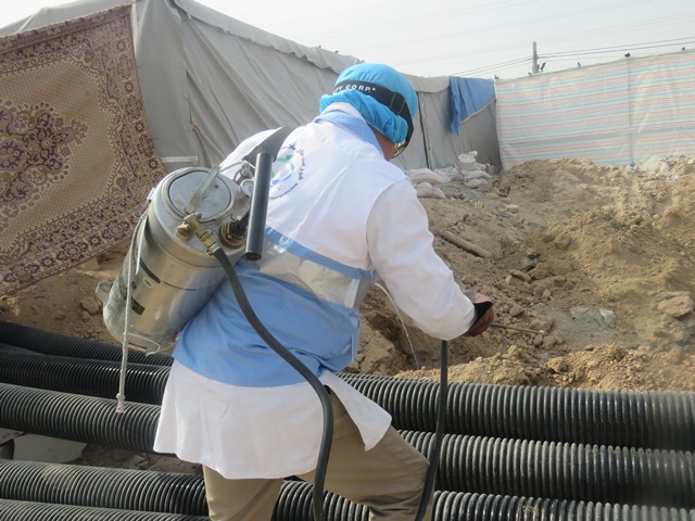 به گزارش خبرنگار وب دا، تیمی متشکل از کارشناس بهداشت محیط، مسئول واحد خدمات و تکنسین واحد بیماریها جهت بازرسی و سم پاشی موکبهای مستقر در در پایانه مرزی چذابه در تاریخ 4 آبان ماه به محل اعزام شدند. هوشنگ خوشی کارشناس بهداشت محیط در این رابطه گفت: پس از بررسی منطقه آموزشهای لازم به پرسنل تهیه و توزیع مواد غذایی در خصوص رعایت نظافت فردی و محیط کار ، لزوم داشتن کارت تندرستی، استفاده مستمر از روپوش کار و آب سالم جهت شستشو و طبخ مواد غذای داده شد. وی افزود: اطراف چادرها و مواکب شهرستان دزفول وتعدای از موکبهای شهرستانهای همجوار نیز توسط آقای عینی الهی با استفاده از سم مخصوص سمپاشی گردید.