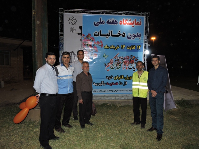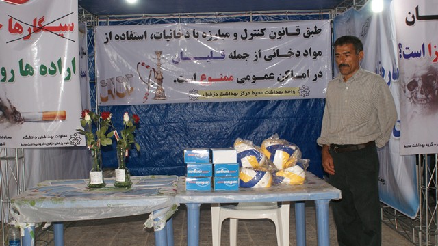 به مناسبت هفته ملی بدون دخانیات نمایشگاهی در همین راستا از تاریخ 12 لغایت 14 خردادماه با شعار قلیان ها را گلدان کنیم در پارک دولت دزفول دایر گردید. مهندس پورآیین ریاست مرکز بهداشت شهرستان دزفول گفت: