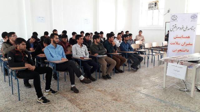 به گزارش خبرنگار وب دا، در راستای اجرای برنامه سفیران سلامت دانشجویی، همایشی در این خصوص جهت سفیران دانشجویی دانشگاه فرهنگیان دزفول (شیخ انصاری) برگزار گردید. در ابتدای برنامه فاطمه مهرالی کارشناس آموزش و ارتقاء سلامت  مرکز بهداشت دزفول، اهمیت اجرای برنامه خودمراقبتی فردی و سفیران سلامت دانشجویی را تشریح نمود سپس زینب رفعت پناه مسئول واحد بهبود تغذیه مطالبی را در خصوص تغذیه سالم ارائه داد. در پایان صادق صیدی کارشناس بیماریهای غیر واگیر مرکز بهداشت شهرستان دزفول در خصوص بیماری دیابت و نقش خودمراقبتی در پیشگیری ازاین بیماری مطالبی را جهت حاضرین بیان کرد.