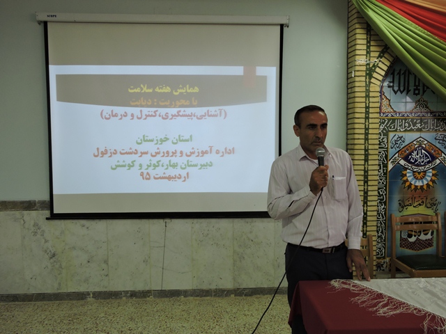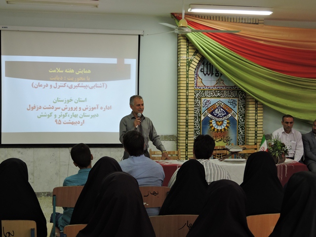 همایش هفته سلامت با محوریت دیابت با همکاری اداره آموزش و پرورش سردشت و مرکز بهداشت دزفول در دبیرستان بهار شهر حمزه شردست برگزار گردید.