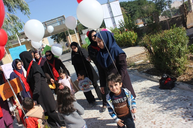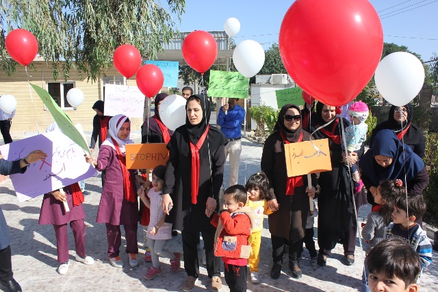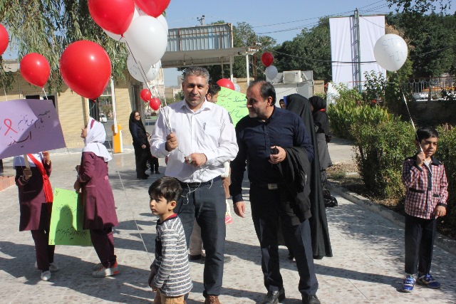 خردسالان و نونهالان به همراه والدین خود به مناسبت گرامیداشت روز جهانی ایدز سال 1396 مسیر بلوار پیام آوران شهرستان دزفول را پیاده روی کردند