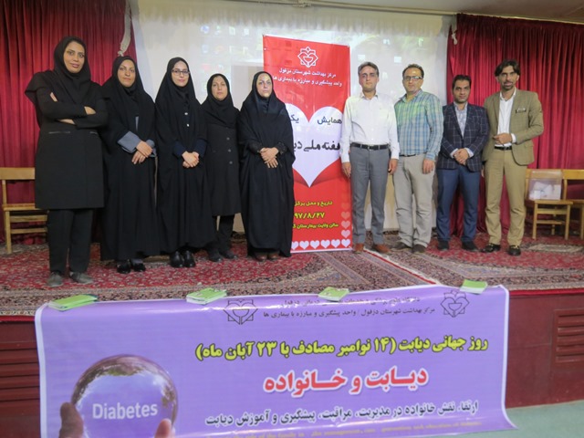 در این همایش یکروزه مهندس پورآئین رئیس مرکز بهداشت شهرستان دزفول ضمن عرض خوش آمدگویی به بیان شرح برنامه و وضعیت بیماری های غیر واگیر در ایران پرداختند. ایشان در ادامه اجرای خطر سنجی بیماری های قلبی عروقی و سرطانها جهت جمعیت بالای 30 سال ،اجرای بسته سلامت پایه کارکنان دولت،پیگیری و اجرای سند ملی پیشگیری از بیماری های غیر واگیر را ازجمله اقدامات موثر در کاهش بیماریهای غیرواگیر دانست. در ادامه برنامه دکتر کریمی فوق تخصص غدد و متابولیسیم در خصوص بیماری دیابت علل و عوارض آن ایراد سخنرانی نمودند. همچنین دکتر قندرچی متخصص قلب و عروق نیز در خصوص دیابت و سلامت قلب مطالب خود را بیان نمودند و پاسخگوی سوالات حضار بودند.خانم رفعت پناه کارشناس تغذیه و رژیم درمانی بعنوان آخرین سخنران در خصوص نقش تغذیه در بیماری دیابت ایراد سخنرانی نمودند. در پایان برنامه نیز به 3 نفر از حضار که به سوالات طرح شده در این خصوص پاسخ داده بودن هدایایی اهداء گردید.