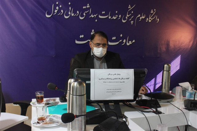 وبینار علمی سرطان"کلیات سرطان، تشخیص زودهنگام و پیشگیری" جهت پرسنل دانشگاه و عموم مردم با حضور متخصصین و اساتید دانشگاه مورخ 6 بهمن ماه 1399 در سالن جلسات معاونت بهداشت برگزار شد.