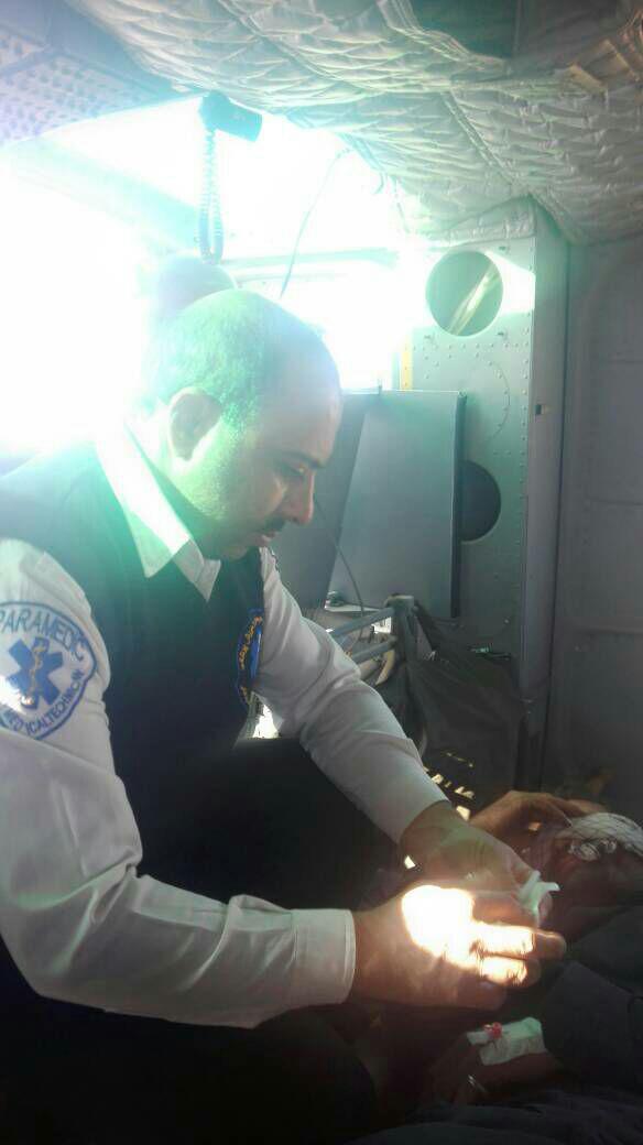 پس از فرود بالگرد در منطقه ی دارخلک ، عملیات درمانی برای این بیمار شروع و پس از ثابت سازی بیمار بر روی تخته پشتی  به بالگرد منتقل شده سپس برای اقدامات درمانی تکمیلی به بیمارستان  بزرگ دزفول (دکتر گنجویان) انتقال داده شد.