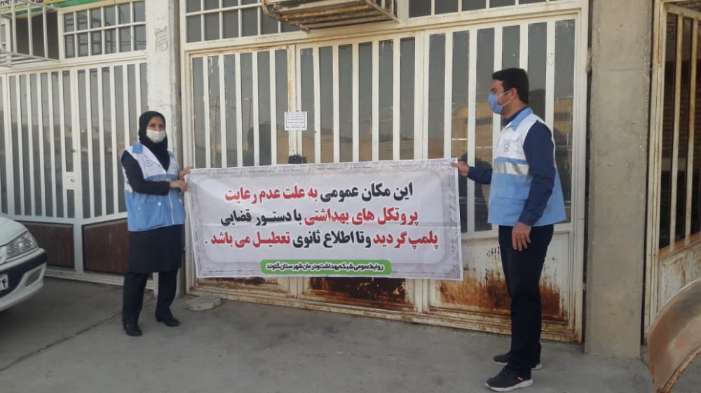 به گزارش روابط عمومی شبکه بهداشت ودرمان گتوند؛ کارشناسان بهداشت محیط مرکز بهداشت شهرستان گتوند با همکاری پلیس نظارت بر اماکن عمومی تعداد ۸ واحدصنفی متخلف را در شهرهای سماله و ترکالکی از توابع بخش عقیلی به علت تخلف از دستورالعمل های مبارزه با کرونا و پروتکل های بهداشتی پلمب کردند.