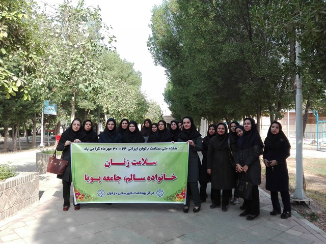 به گزارش خبرنگار وب دا، در هفته ملی سلامت بانوان ایرانی24-30مهرماه با شعار "سلامت زنان،خانواده سالم،جامعه پویا" همایش پیاده روی با صرف صبحانه جهت بانوان شاغل در ستاد مرکز بهداشت دزفول و معاونت بهداشتی دانشگاه در تاریخ 27 مهرماه در پارک خانواده دزفول برگزار شد. کارشناس میانسالان خانم صادقی هدف از این پیاده روی را افزایش تحرک و نشاط مخصوصاً در بانوان شاغل دانست. در پایان این پیاده روی علاوه بر توزیع تراکت وپمفلت صبحانه سالم نیز صرف گردید.