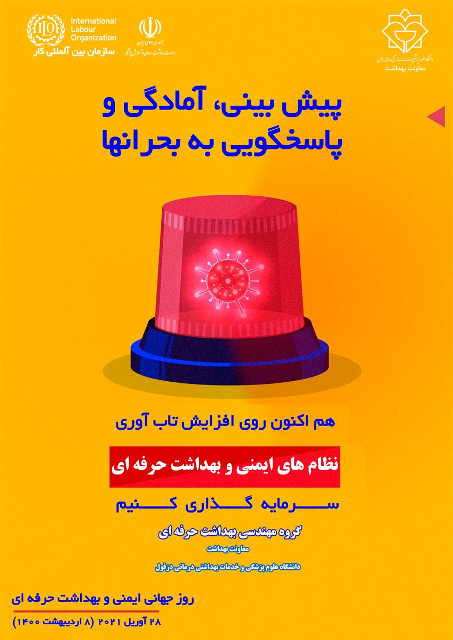 همه­گیری بیماری کووید-19 دولت­ها، کارفرمایان، کارگران و عموم مردم را با چالش­های بی سابقه­ای در رابطه با ویروس مواجه نموده است و تأثیرات بسیاری را در دنیای کار به همراه داشته است. روز جهانی ایمنی و بهداشت حرفه­ای با استفاده از درس آموخته­ها و تجربیات دنیای کار، بر روی استراتژی­های تقویت سیستم­های ملی ایمنی و بهداشت حرفه­ای (OSH) با هدف افزایش تاب­آوری سیستم­های ایمنی و بهداشت حرفه­ای در برابر بحران هایی پیش رو در حال و آینده تمرکز خواهد داشت.