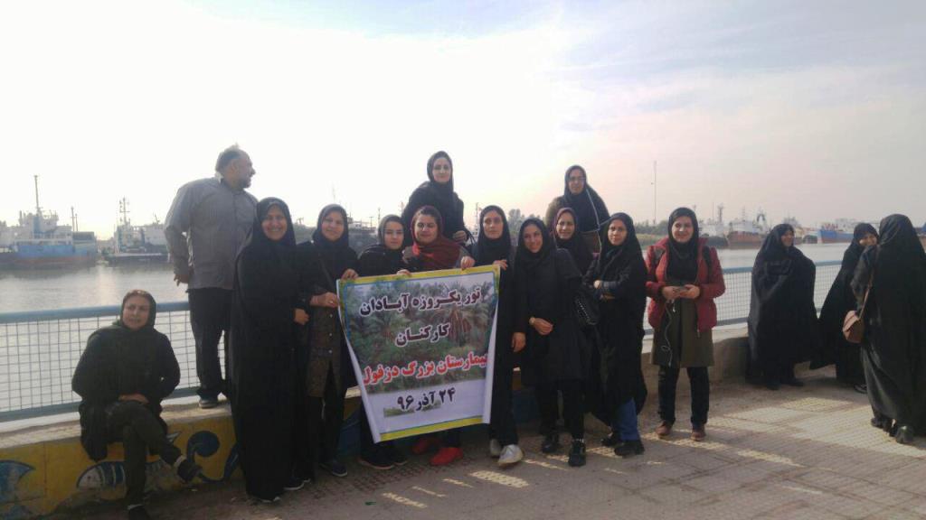 جمعه24آذر96بیش از50نفرازکارکنان زن بیمارستان بزرگ دزفول درتوریک روزه سیاحتی آبادان به منظوربازدیدازمناطق جنگی وگردش درکنارشط وخریدازشهرشرکت کردند.