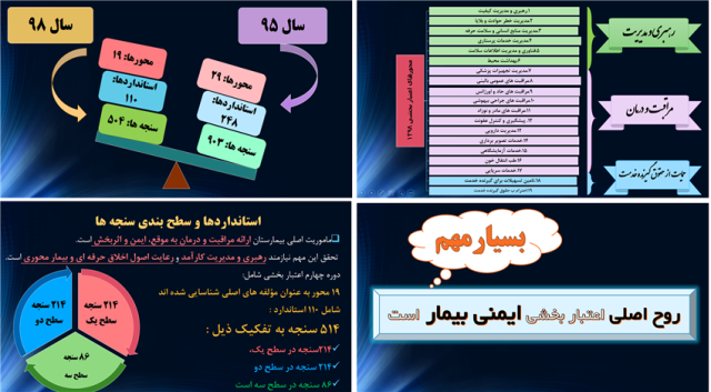 دراین کارگاه ابتدا مدیر بهبود کیفیت بیمارستان به معرفی اهداف وسیاست های پیش رودر نسل چهارم اعتباربخشی پرداخت وشیوه نامه اعتباربخشی نسل چهارم وتفاوت های آن با دوره ی پیشین اعتبار بخشی را توضیح داد.درادامه محورهای مراقبت های عمومی بالینی استانداردهای مراقبت های حاد واورژانس،استانداردهای مراقبت مادر ونوزاد،استانداردهای مراقبت بیهوشی وجراحی،استانداردهای خدمات سرپایی وهمچنین نکات کلیدی ومهم سنجه های مدیریت خطرحوادث بلایا وسنجه های حمایت ازحقوق گیرنده خدمت توسط کارشناس هماهنگ کننده ایمنی وکارشناسان بهبود کیفیت ارائه شد.