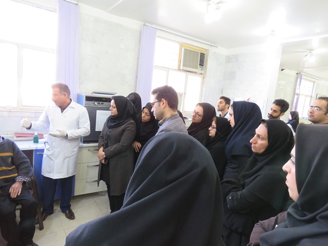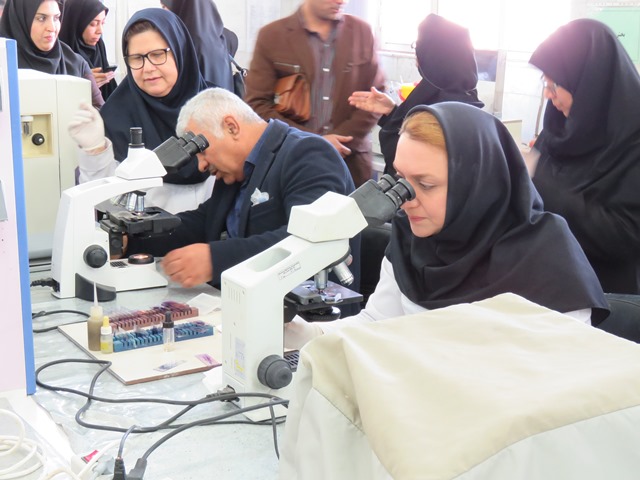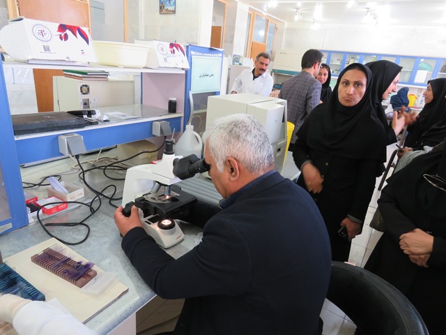 در ادامه دکتر مهدی محبعلی راه های تشخیص آزمایشگاهی و روش نمونه گیری صحیح از بیماران مبتلا به لیشمانیوز را به صورت تئوری شرح داد و با حضور در فیلد و انجام نمونه گیری به صورت عملی از افراد مشکوک به بیماری سالک، کارشناسان با روش های صحیح نمونه گیری و رنگ آمیزی آشنا شدند.