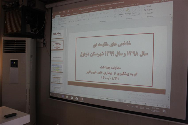 کمیته بررسی عملکرد برنامه های غیرواگیر و شاخص های مقایسه ای سال 1398 و 1399(NCD) با حضور مهندس اعلمی معاون فنی معاونت بهداشت، دکتر شفیعی نیا مدیرگروه بیماری های غیرواگیر، مهندس جعفری نیا معاون فنی ستاد مرکز بهداشت دزفول، راضیه حلوائی زاده مدیرگروه شبکه و ارتقاء سلامت و کارشناسان گروه گروه بیماری های غیرواگیر مورخ 6 اردیبهشت ماه 1400 در سالن جلسات این معاونت برگزار شد.