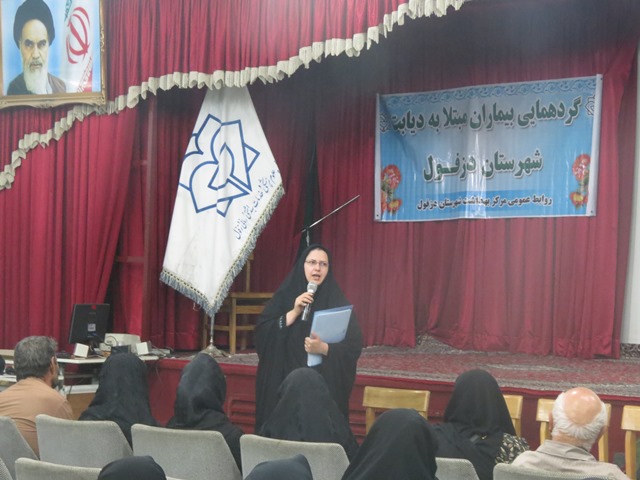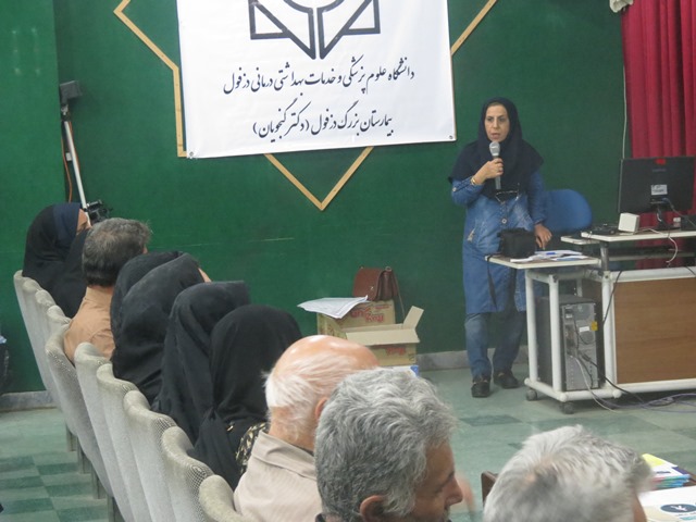با هماهنگی کارشناس دیابت مرکز بهداشت دزفول در راستای برنامه های مرتبط با پیشگیری و کنترل بیماری دیابت و نیز  اجرای برنامه ملی خودمراقبتی در گروههای خودیار، همایشی  با همکاری واحد های آموزش و ارتقاء سلامت و پیشگیری و مبارزه با بیماریهای مرکز بهداشت شهرستان دزفول روز پنج شنبه مورخ 28/5/95 در سالن اجتماعات بیمارستان گنجویان برگزار گردید. در ابتدای جلسه احسان بخش مسئول واحد آموزش و ارتقاء سلامت، نقش خودمراقبتی در مدیریت بیماری های مزمن از جمله دیابت را تشریح نمودند، در ادامه خانم طاهری کارشناس تغذیه کلینیک دیابت بیمارستان گنجویان نیز در رابطه با اهمیت تغذیه سالم در کنترل بیماری دیابت آموزش های لازم را ارائه دادند.