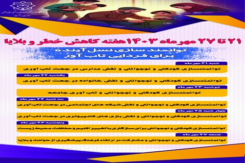 هرساله گرامیداشت روز جهانی کاهش خطر بلایا با هدف ایجاد تاب آوری، ارتقاء آمادگی و کاهش آسیب و خسارات در ۲۲مهرماه (۱۳ اکتبر ) برگزار می گردد. به همین منظور اقدام درست در زمینه کاهش این خطرات و  آمادگی کشورها در برابر خطراتی که بلایای طبیعی و غیرطبیعی ایجاد می کنند از اهمیت ویژه‌ای برخوردار است.