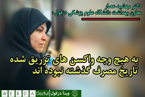 ایشان ضمن ابراز تاسف از انتشار غیرمسئولانه شایعات توسط برخی افراد، افزود ادعای انقضای تاریخ واکسن‌ها صحت ندارد و به دلیل تحویل سهمیه ماهانه از وزارت؛  هیچ یک از واکسن‌ها تا پایان تاریخ مصرف در انبار دارویی موجود نمی‌مانند.