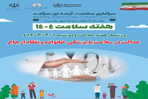 روز اول هفته سلامت ( دوشنبه ۱۴۰۴/۲/۱ ) با شعار عدالت در سلامت ، با پزشکی خانواده و نظام ارجاع