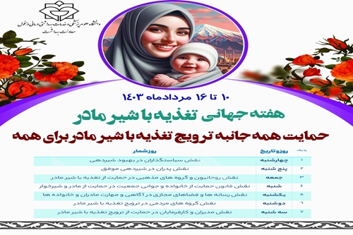 همچنین ایشان متذکر شدند با توجه به شعار امسال هفته شیر مادر "حمایت همه جانبه ترویج تغذیه با شیر مادر برای همه"  و با استناد به ماده 22 قانون جوانی جمعیت، کلیه ادارات و سازمان های دارای کارکنان خانم موظفند زیر ساخت های لازم در خصوص حمایت از مادران شیرده و فضای مناسب جهت استراحت و شیردهی در راستای تحقق و ارتقاء برنامه ترویج تغذیه با شیر مادر را فراهم نمایند.