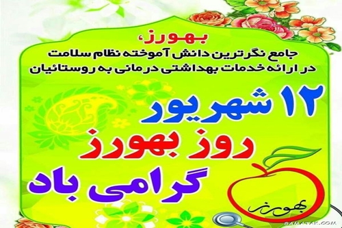 ۱۲ شهریور فرخنده روز بهورز، بهانه‌ای است تا قدردان زحمات شیر زنان و غیور مردانی باشیم که با وقف عمر و توان خود؛ برای تندرستی مردم نقش آفرینی می‌کنند و دلسوزانه سلامت دیگران را بر خود تکلیف می‌دانند.