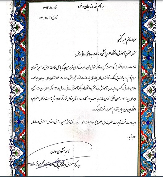 رتبه نخست آموزش کارکنان دانشگاه علوم پزشکی دزفول کسب شد