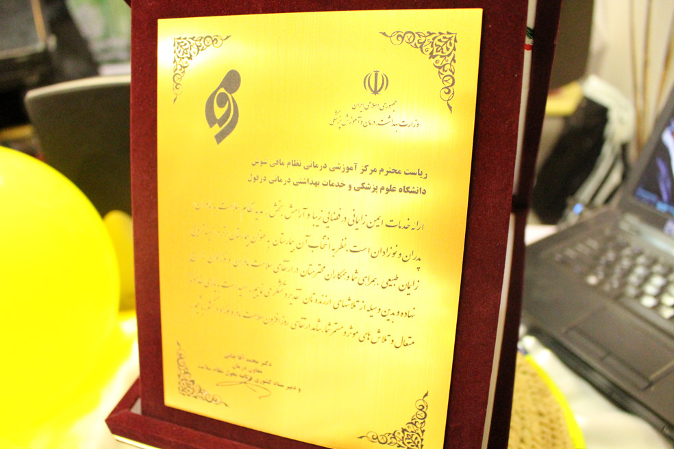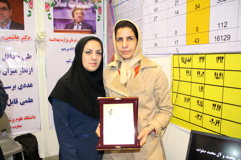 در حاشیه همایش تقدیر از مجریان برتر ارتقاء سلامت مادر و نوزاد و برنامه ترویج زایمان طبیعی در سالن همایش های بین المللی رازی دانشگاه ایران با حضور تمامی معاونت های درمان دانشگاه های علوم پزشکی سراسر کشور در روز 16 اسفندماه ، نمایشگاه دستاوردهای ترویج زایمان طبیعی به مدت یکروز برگزار شد و در این مراسم دکتر خلیلیان رئیس بیمارستان نظام مافی شوش لوح تقدیر را دریافت نمود .