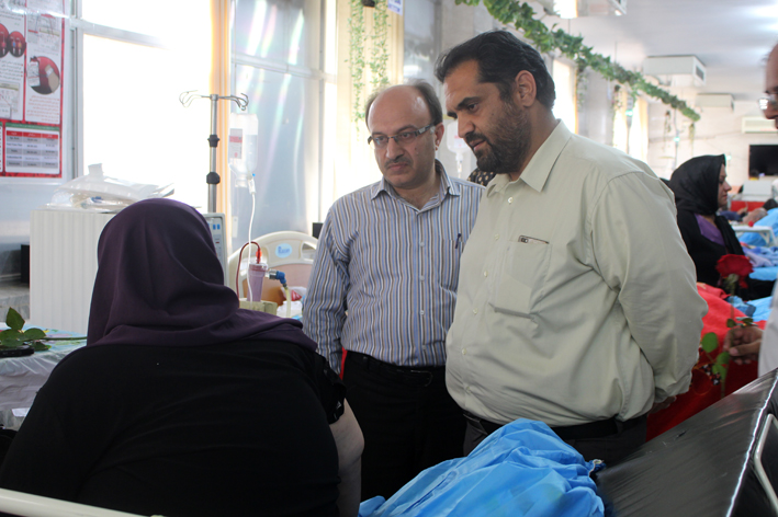 در روز شنبه مورخ 4/2/95 مصادف با چهارمین روز از هفته سلامت ، معاون درمان ، معاون بهداشتی دانشگاه علوم پزشکی دزفول به همراه رئیس بیمارستان بزرگ دزفول از بیماران دیالیز این بیمارستان بازدید به عمل آوردند .