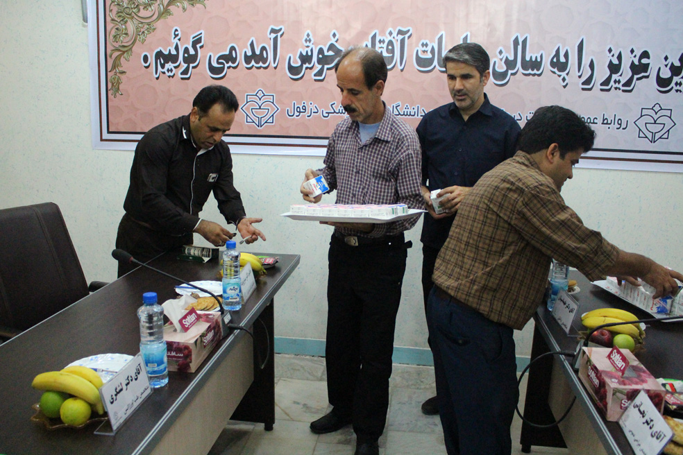 برای معارفه پزشکان متخصص ورودی 95 به صورت جذب ضریب ( کا ) دانشگاه علوم پزشکی دزفول جلسه ای با حضور اکثریت متخصصان جدید ، ریاست دانشگاه ، معاونان بهداشتی و غذا و دارو ، رئیس شبکه بهداشت و درمان شوش ، رؤسای بیمارستان های دزفول و شوش و مسئولین واحد نیروی تخصصی معاونت درمان در روز سه شنبه 18 آبان در سالن جلسات آفتاب معاونت درمان برگزار شد و به رسم یادبود لوح و هدایائی تقدیم شد .