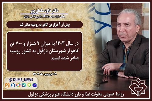 معاون غذا و دارو دانشگاه علوم پزشکی دزفول خبر داد: بیش از 9 هزار تن کاهو از دزفول به روسیه صادر شد.