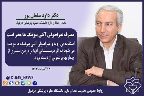 معاون غذا و دارو دانشگاه علوم پزشکی دزفول در هفته مقابله با آنتی بیوتیک ها: