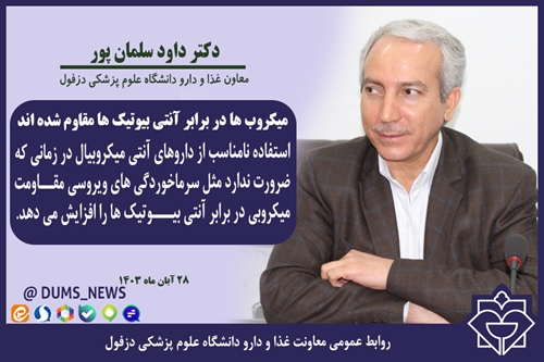 معاون غذا و دارو دانشگاه علوم پزشکی دزفول در هفته آگاه سازی در زمینه آنتی بیوتیک ها: