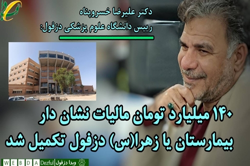 140 میلیارد تومان مالیات نشاندار بیمارستان یازهرا(س) دزفول تکمیل شد